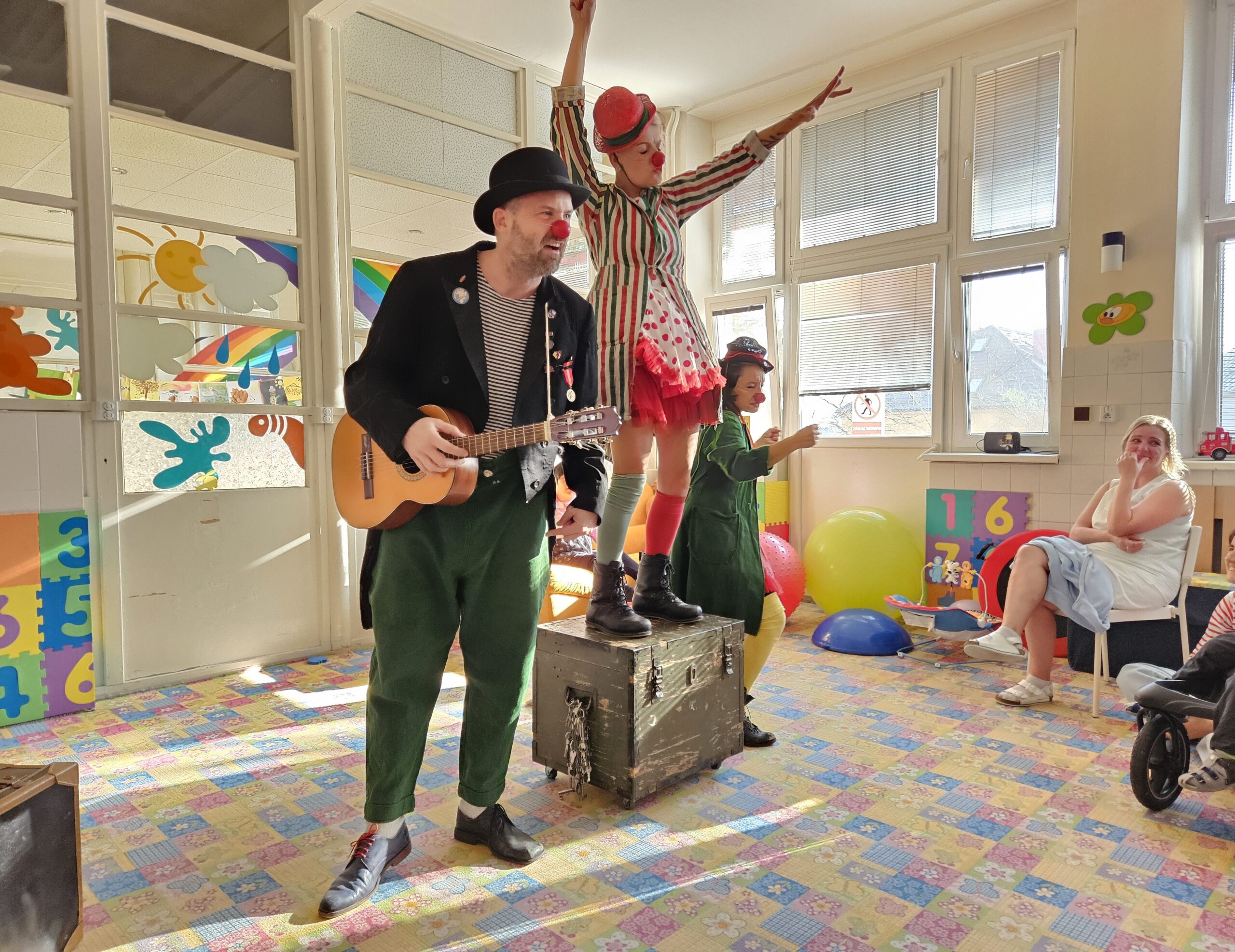 Ve čtvrtek 7. 11. 2024 jsme v dětské centru přivítali zdravotní klauny. Posláním organizace Zdravotní klaun je přinášet radost, dobrou náladu, a především naději na místa, kde se jich příliš nedostává. Jsou to hlavně dětské nemocniční pokoje, specializované ambulance, domácnosti pečující o těžce nemocné děti.